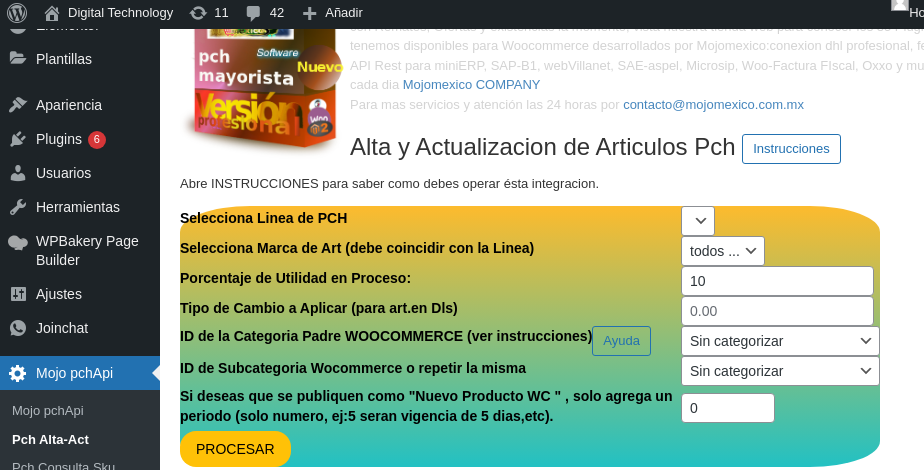 Hemos creado รฉsta Guia de Configuraciรณn del conector PCH-Woocommerce catalogo y promociones del Mayorista de computaciรณn para que te sea mรกs fรกcil usar nuestro producto; en todos los productos Mojomexico que adquieras siempre vas a contar con estas guรญas mas el soporte ilimitado via ticket.